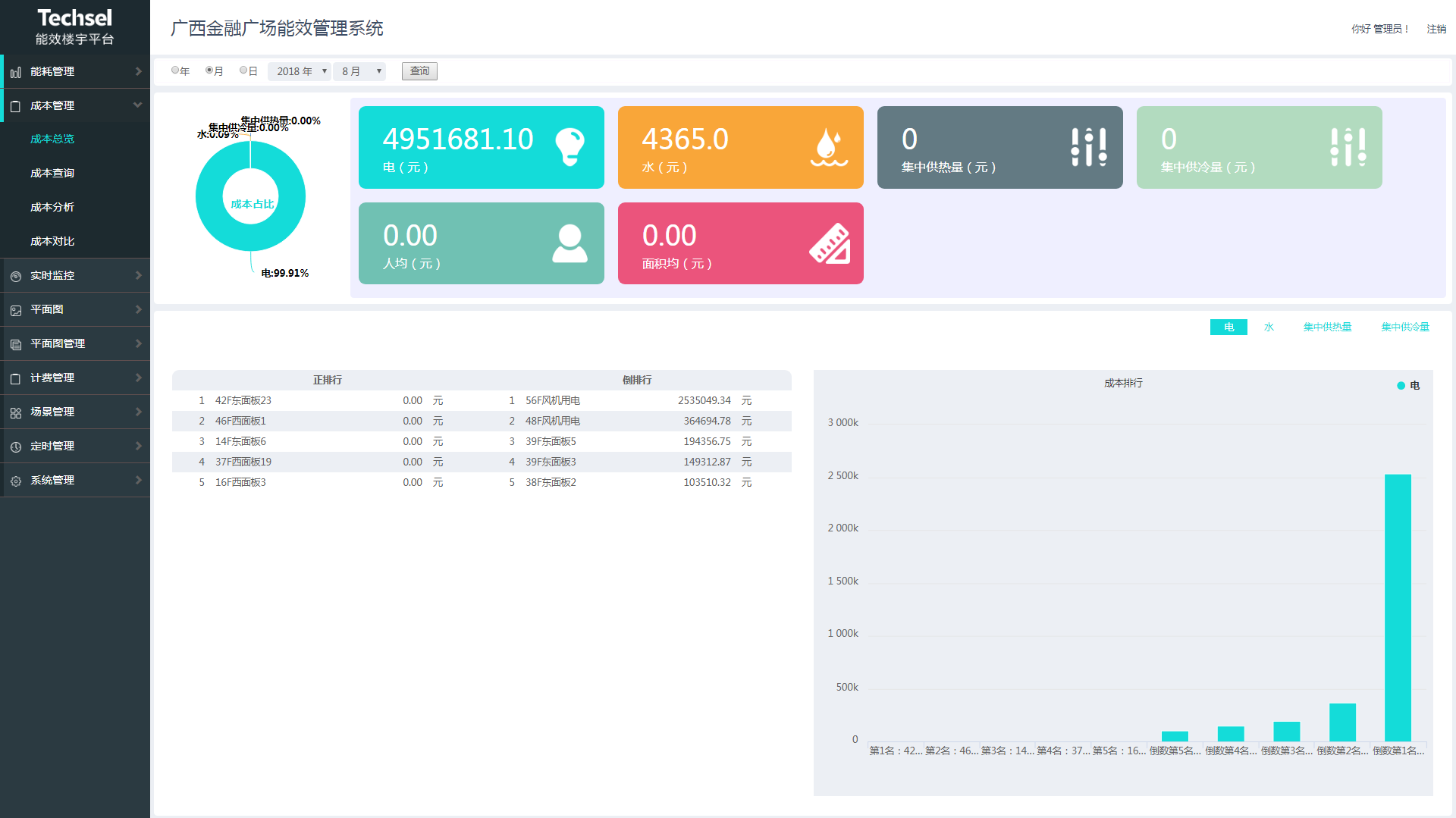 案例實(shí)施內(nèi)容:整個(gè)樓內(nèi)安裝2000多只風(fēng)機(jī)盤管溫控器和22只智能網(wǎng)關(guān)設(shè)備,實(shí)現(xiàn)聯(lián)網(wǎng)監(jiān)管,并實(shí)現(xiàn)中央空調(diào)時(shí)間性能耗計(jì)量;安裝130多只電表、130多只水表、100多只能量表,以及24只能耗采集器,實(shí)現(xiàn)對(duì)整個(gè)大樓水、電、暖能耗使用的分類分層計(jì)量分析。項(xiàng)目實(shí)施后,金融廣場(chǎng)管理者可隨時(shí)掌握各區(qū)域電、水、暖綜合能耗情況,并制定科學(xué)合理的用能計(jì)劃和節(jié)能目標(biāo)。