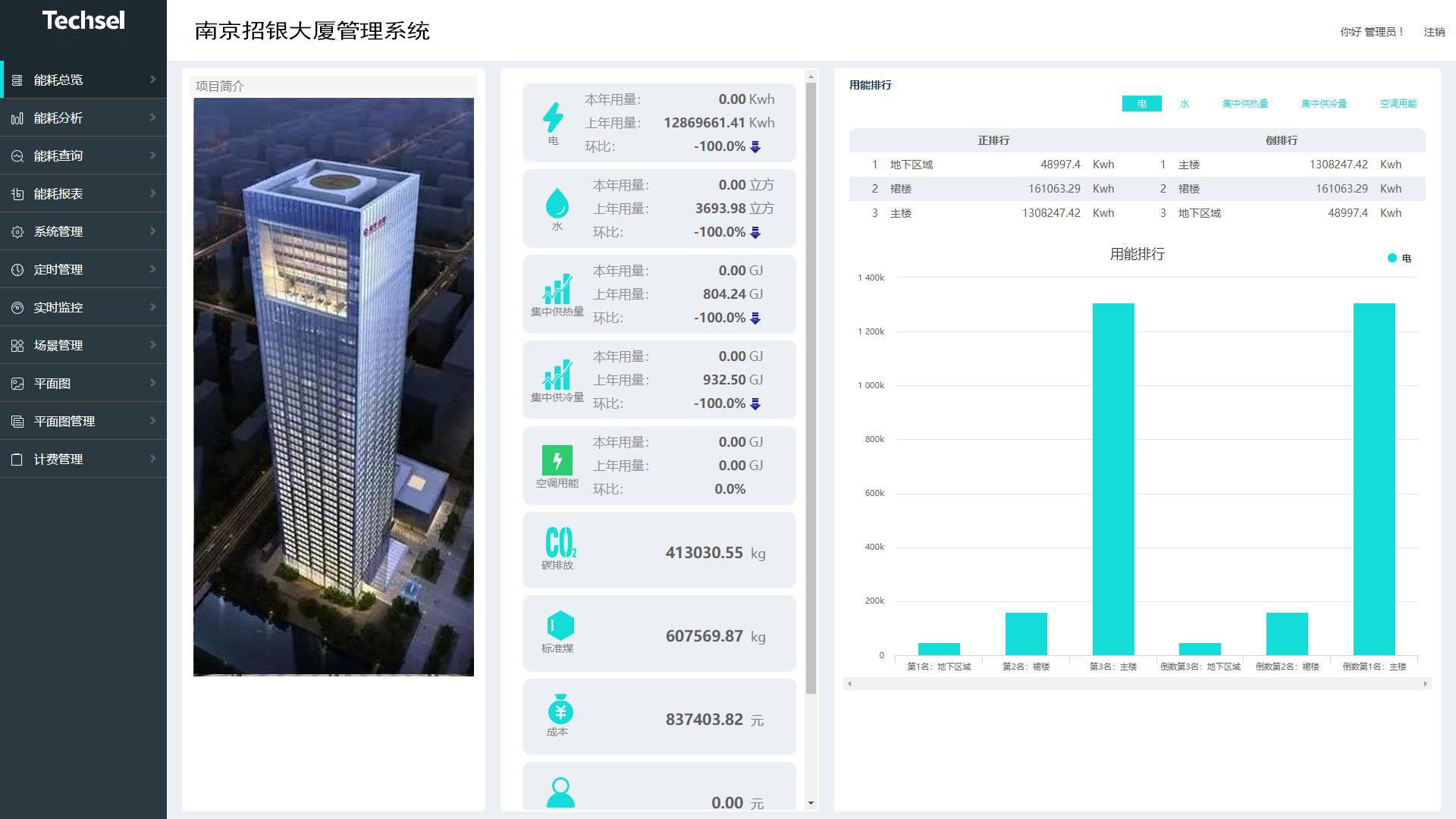 通過泰杰賽建筑節(jié)能監(jiān)管系統(tǒng)軟件平臺,招銀大廈管理者可隨時掌握各區(qū)域電、水、暖綜合能耗和電力設(shè)備安全運行情況,并制定科學(xué)合理的用能計劃和節(jié)能目標(biāo)。