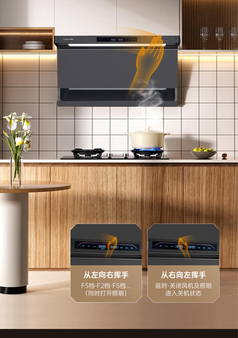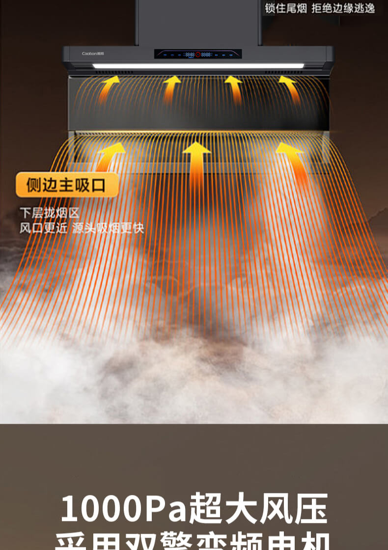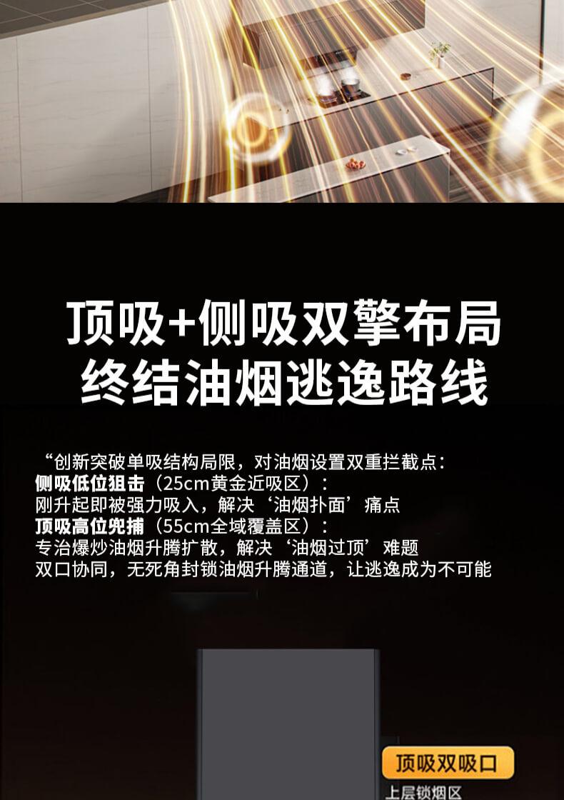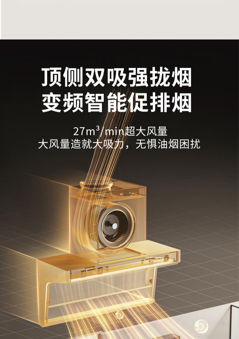 疏水疏油抗刮花,27方頂側(cè)雙吸,1000Pa變頻大風(fēng)壓,自清洗,揮手智控