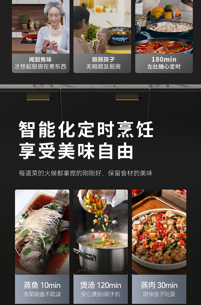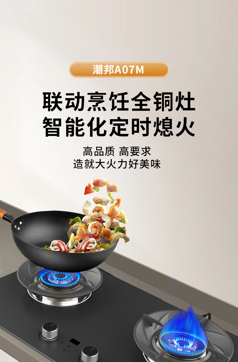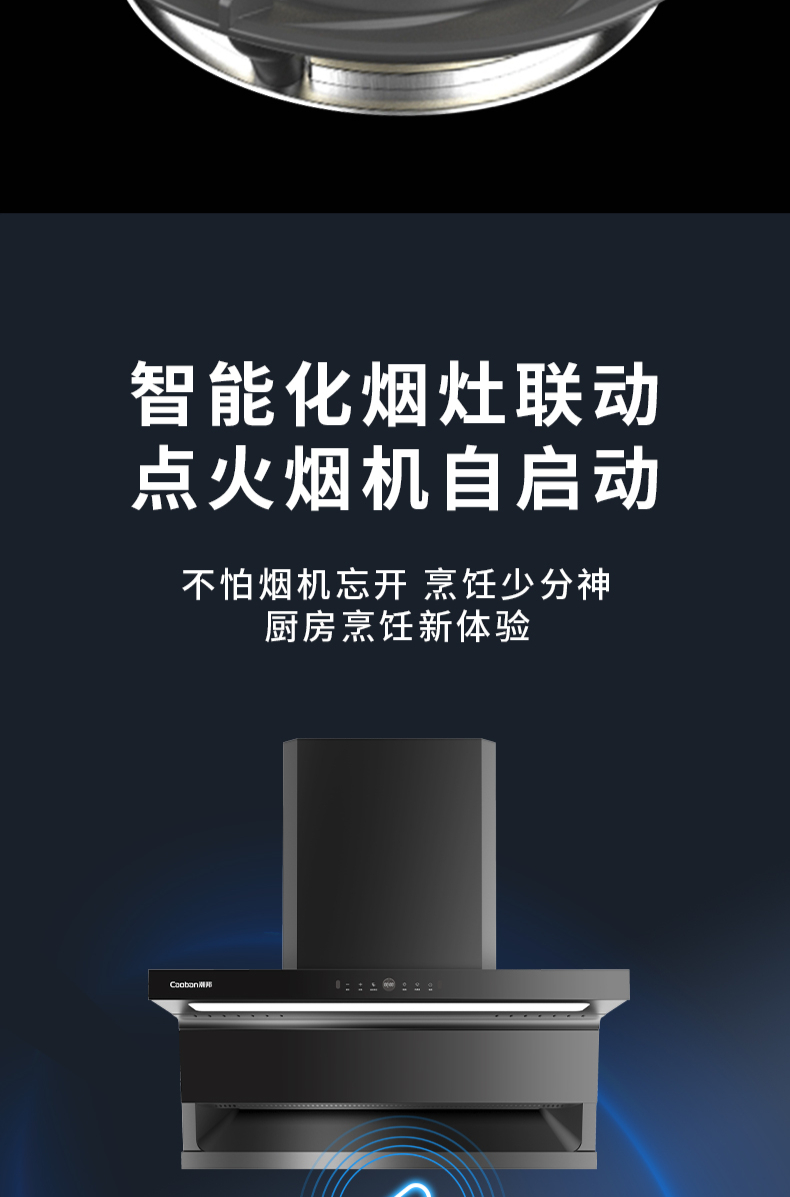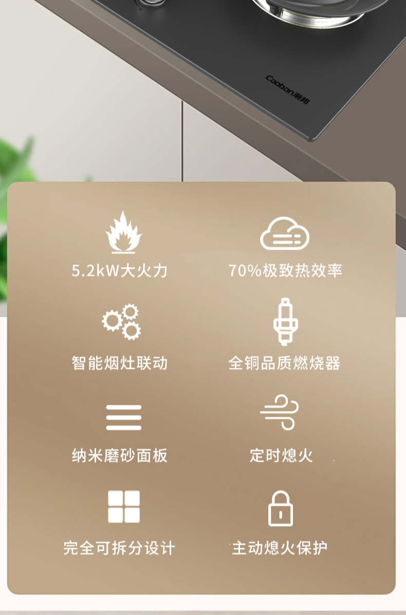 大火力,70%熱效率;智能煙灶聯(lián)動(dòng);全銅燃燒器;完全可拆分設(shè)計(jì);主動(dòng)熄火保護(hù);